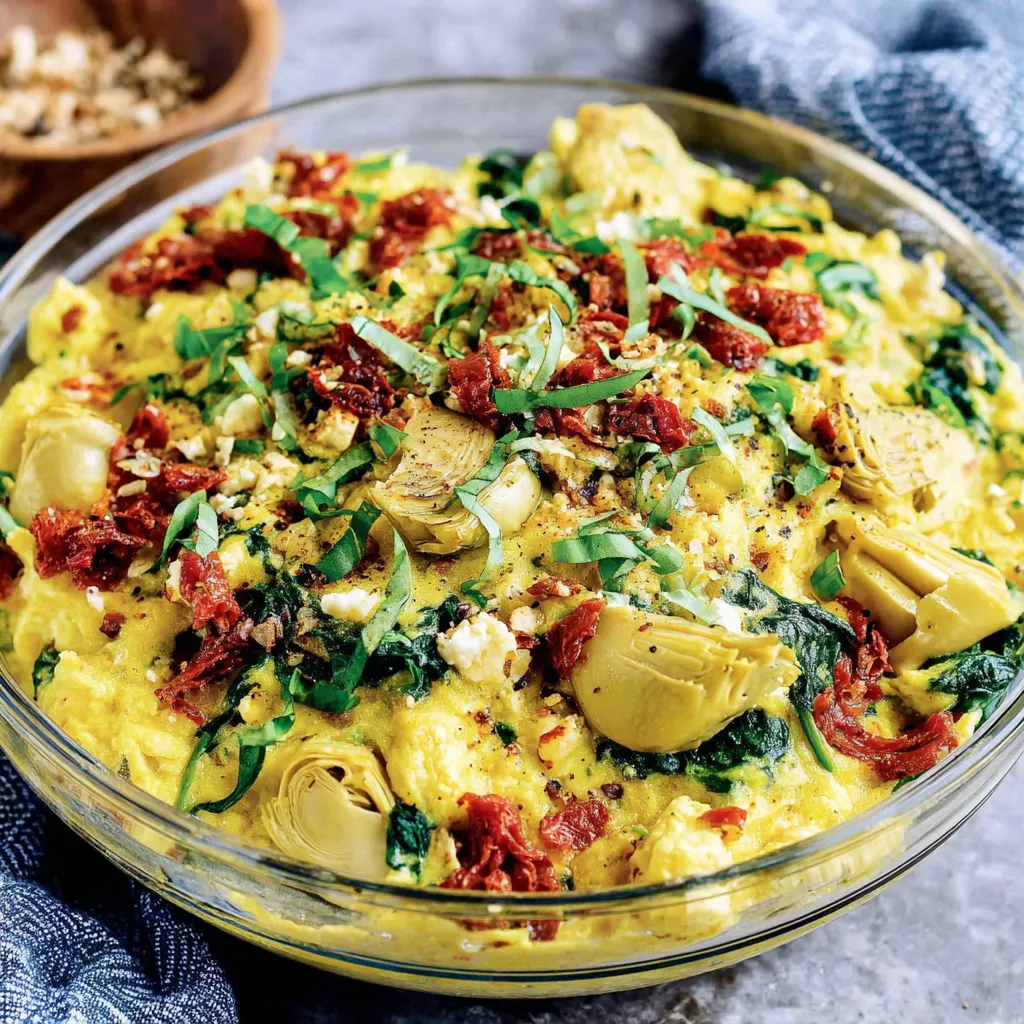Spinach Artichoke Sun-Dried Tomato Breakfast Casserole